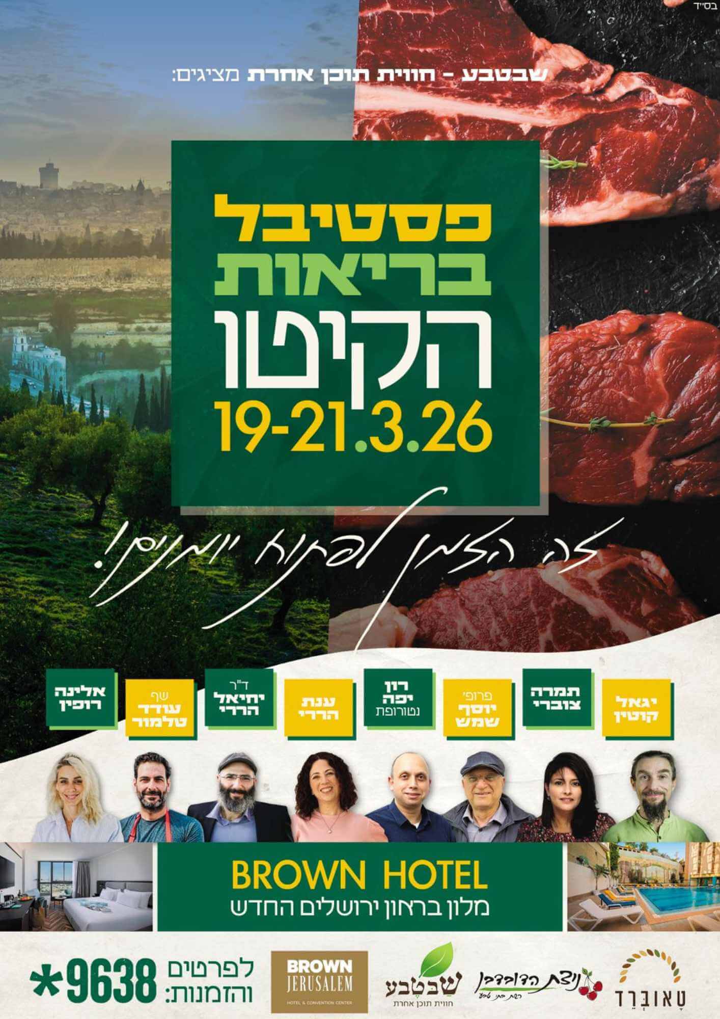 🌿 פסטיבל הקיטו ה-1 של ישראל 🌿 שמחים להזמין אתכם להצטרף אלינו לפסטיבל הקיטו הראשון מסוגו בארץ חוויה לגוף ולנפש, תוכן שרוקם בתוכו הרצאות גוף-נפש מעשירות, לצד תרגול של תנועה מחדשת וממלאת מצברים 19-21.3.26 חמישי -מוצ"ש במלון בראון החדש, בירושלים בואו לפגוש את הנבחרת שלנו: השף עודד טלמור, יגאל קוטין, תמרה צוברי, פרופ' יוסף שמש, …